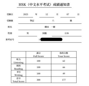 中国語の勉強は継続しますが、次回の受験は未定です。